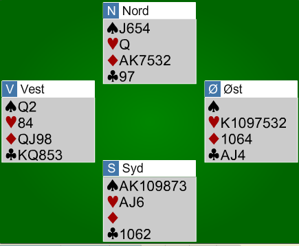 Med hjerter ut var det tolv enkle stikk, nesten tretten! Kløverutspil beter slemmen i løpet av sekunder.