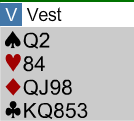 Her er et utspillsproblem fra turneringen (vest giver, N/S i sonen):