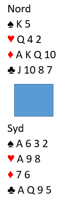 Forleden kom denne hånden som var interessant både i meldingene, og det kunne blitt interessant i spillet også hvis vi pushet og meldte slem i ved bordet (giver nord):