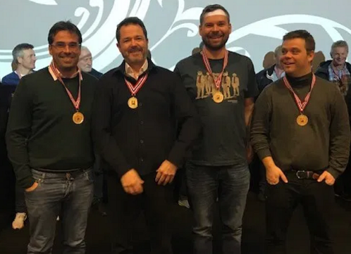 f.v. Tor Bakke, Jim Høyland, Sven-Olai Høyland, Magne Eide og Trond Hantveit. Jim vant i tillegg den totale butleren for 1. og 2. divisjon med +1,26.