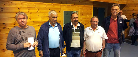 Sigerspallen Havgapet 2017. Frå vesntre: Leif Juvik, Joleiv Midttveit, Erik Eriksen, Finn Fyllingslid og Bjørn Hauge. Frode Dyrstad hadde sprunge for å nå ei ferje då biletet blei teke. Foto: Rune Fagerbakke, Austevoll BK.