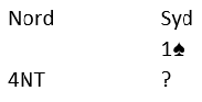 Her viser nord på 4NT (hvis "alt" er Key Card uten at en farge er støttet) to nøkkelkort, og syd vet ikke hva han skal gjøre.