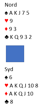 Her har nord en svakere åpning, men han har det som behøves, de to sorte essene. Hvis syd kan få spurt etter ANTALL ESS er han på trygg grunn og kan melde storeslem (i grand).