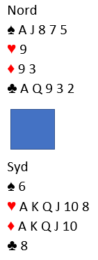 Syd hadde absolutt fått utlevert en meget spesiell hånd, og ikke skal jeg hevde at dette er frekvent! Litt overraskende åpnet makkeren med 1 spar! Nå kan selvsagt syd melde litt frem og tilbake og forsøke å få fastsatt ruter eller hjerter som trumf. Men det er ikke sikkert det lykkes...