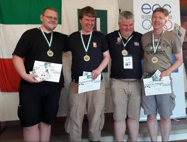 Noen tar bridgepause om sommeren,men de ivrigste spiller sommerbridge hele sommeren (sjekk hjemmesiden til din lokale klubb for opplysninger ),de aller aller ivrigste reiser til Italia for å spille Åpent EM.For de norske ble det stor suksess i Åpent EM Lag,der Highlanders gikk helt til topps. Våre egne "gutter" Lag Kvaran ( Arnstein Nymoen,Marcello Palagi,Rune og Bjørn Kvaran) fikk en eventyrlig start på mesterskapet og lå på en flott 5.plass etter 3 kamper,så kom det ett par uheldige kamper,før de igjen fant gliden og til slutt endte på 43.plass av 119 lag,godt over middels. Arnstein og Marcello spilte også Åpent EM Par der de var ett spill fra å kvalifisere seg til A-finale.Well done gutter !