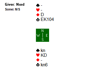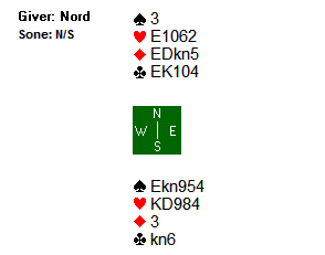 Om Trumfen hadde vært fordelt 2-2 hos motparten ville Christian vunnet kontrakten. Slik satt det dessverre ikke denne gangen da hele spillet så slik ut: