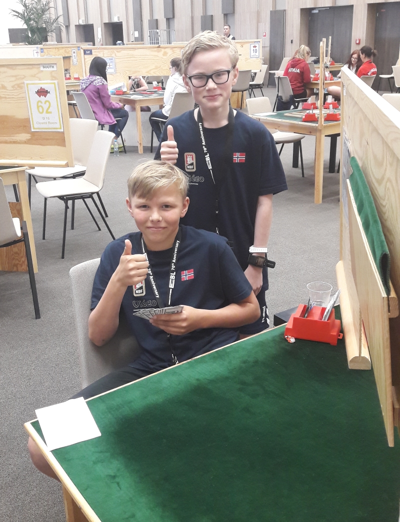 Christian måtte dermed notere ei beit. På det andre bordet hadde tvillingbrødrene Ola og Mikael Rimstedt en meldemisforståelse og stoppet i 4 hjerter med 13 stikk. Uansett ble det 13 IMP ut for Norge.