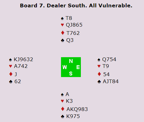 3NT var definivt ikke den mest populære kontrakta, det var heller 4 hj. 3NT med 11 stikk ga derfor gode mynter i kassa, mye takket være den beskrivende 1NT-åpninga til tross for 6kort minor.