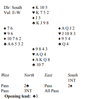 1 NT- 2 sp fulgt av 2 NT og 3 kl/ 3 ru er siste bud for spill
