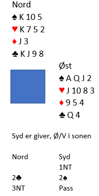 A:1 NT- 2 ru= Overføring til hjerter, det loves 5+ hjerter men kan være helt ned i 0 hp.