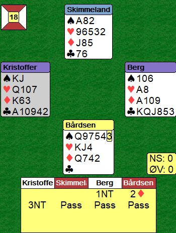 Nei da, selv om 3 grand ble spilt fra feil hånd slik kortene så ut var det sjanser, men det må gjettes riktig etter sparutspill fra syd. Bårdsens 2 ruter viste en majorfarge.
