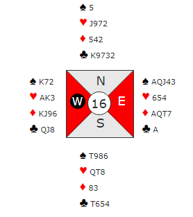 I sparkontrakt er det tolv toppstikk. Det trettende kan kun komme ved å presse ut kløver konge mot trumf, og det lykkes. Så de som var i 7 spar var litt heldige, storeslemmen hadde i praksis 50% sjanse (litt mindre, det kan sitte 5-0 i trumf, og det kan sitte 5-0 i ruter slik at det kommer ruter ut til stjeling). I grandkontrakt er det kun tolv stikk. Noen fikk tolv stikk i 6 grand, og det kan kun skje ved at både nord og syd kaster unna hjerter slik at det blir tre hjerterstikk, eller at nord blanker kløver konge fordi han tror han må holde hjerteren. Pluss 1470 (6NT, 13) er derfor en heldig score, og det ga +7. Å spille 6 spar med tretten ga +1. Seks par noterte +2210 for 7 spar med tretten, og det fikk de +22 for, av 29 oppnåelige. Ett par meldte og vant 7 grand og tok toppen for det, mens fem par delte bunnen Ø/V for 7 grand med bet.