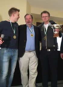 Boye og Espen flankerer en av bridgehistoriens største, Jeff Meckstroth