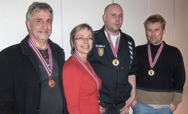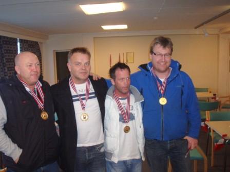 Det må ha vore noko av det tettast seriemesterskapet på lang lang tid og avslutningssiffra sto ikkje attende for det. Før siste runde kunne 8 lag i teorien vinne og alle laga kunne i teorien rykke ned. Lag Haram vann til slutt med eitt VP men høyr her: Hadde lag Haram fått eit imp meir i mot seg eller lag Mælen fått eitt imp meir i sin kamp og då hadde det blitt innbyrdes oppgjer. DEN KAMPEN VANN LAG MÆLEN MED 1 IMP!! Så eitt imp i motsatt retning i to kampar hadde gjort at eitt imp i innbyrdes hadde snudd dei t trønderane sin favør. Vinnarane frå venstre Torstein Hesseberg, Petter Haram, Tommy Skodje og Arnt Ola Fidjestøl. Arnt Vaagsæter er også med på laget. Resultatliste m butler her.
