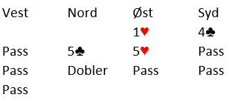 Å melde 5 kløver med renons var unekltelig litt spesielt, men det så jo aktuelt ut inntil videre. Øst var presset opp i 5 hjerter doblet, og N/S lå an til et godt spill.
