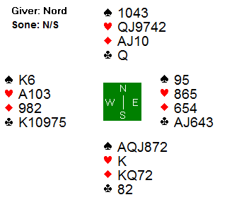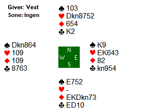 Den norske syd valgte å si 2 hjerter, og da gikk det pass rundt. Denne gangen ble det feil, da dette var alle hendene: