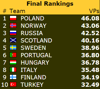 I andre funde slo veteranene til med storseier mot Finland. 83-5 i IMP var mer enn nok til å sikre 20-0-seier. Jeg kommer om litt tilbake med noen spill fra kampen senere i kveld.