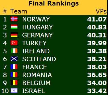 Norge vant 5 og 2 IMP på de siste to spillene, og snudde kampen til seier!