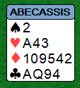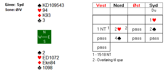 Spillefører fortsatte med en stor spar, og var så framme i følgende posisjon:
