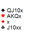 Vest har dermed sannsynligvis enten 1462 fordeling eller 1561 fordeling. Har vest singel kløver, kan jeg legge ned en honnør først for å se om enten kløver 10 eller knekt faller singel, men har han singel, er det dobbel så stor sjanse for at det er en liten singel. Har øst J10xx(x) i kløver må jeg ta dobbelkutten i kløver på direkten (mens jeg ennå har et sparinntak i bordet).