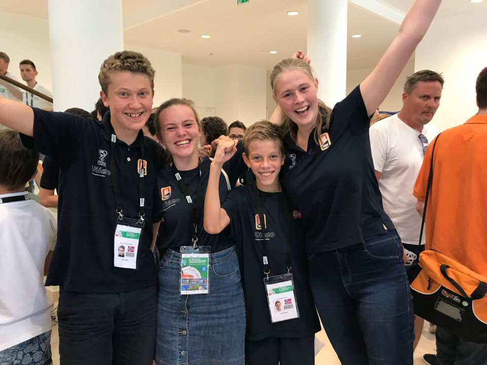 Glade gullmedaljører i Opatija: Fra venstre Marius D. Austad, Agnethe H. Kjensli, Anders Brogeland og Sofie G. Sjødal. (foto: Tonje Brogeland)