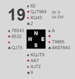 Merk at Ø/V med sine 14 HP til sammen kan vinne 7 kløver om ikke syd spiller ut sin single trumf!