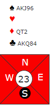 Nord plukket opp en lignende hånd denne kvelden, men da åpnet motstanderen til høyre (noen steder) med 1 grand (15-17):
