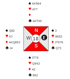 Det er klart at ved flere bord valgte vest å åpne med 1 ruter heller enn 1 grand (jeg liker 1 grand med de kortene).