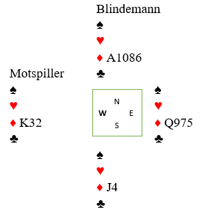 Det gikk altså ruter knekt, konge og esset fra nord. Nå ser du at spillefører ikke kan få mer enn det ene stikket.