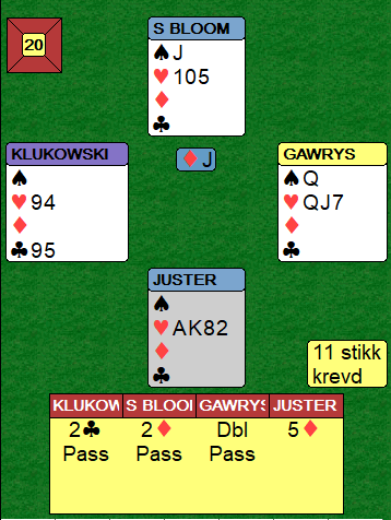 Det er kun to kløvertapere om en ser på kortene litt overfladisk, men kun to tapere betyr langt i fra alltid at det er elleve stikk!