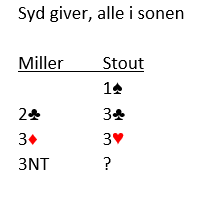 De hadde ikke til rådighet 3 hjerter direkte over 2 kløver som Splinter, og siden paret spiller Presisjonskløver var syd begrenset til 15 poeng. Derfor foreslo nord 3 grand. Syd begynte å tenke, og nå var hele mesterskapet i hans hender: hvis han passer på 3 grand tapes finalekampen, hvis han går videre og de ender i slem blir det gull!