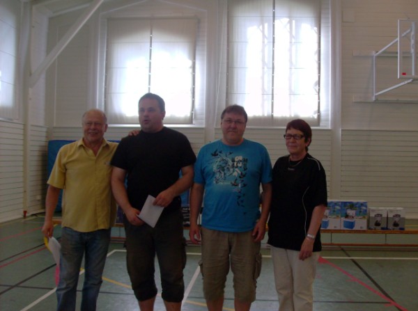Det var som vanlig god deltagelse fra Trøndelag under årets storturnering i Østersund som ble arrangert i helga. Best av våre ble Ove Reidar Holmen og Arnstein Nymoen som tok bronse i et sterkt felt med flere gode par både fra Norge og Sverige. Børre Lund og Morten Tilset fra Heimdal BK tok sølv, men ble klart slått av de suverene vinnerne Morgan Svensson og Thomas Karlsson fra Østersund/Gøteborg. Ove Reidar Holmen og Arnstein Nymoen mottar sine velfortjente premier fra turneringsstaben. Steinar Hoff, Ove Reidar Holmen, Elisabeth Ploujoux Hoff og Olav Ukkelberg spilte helgas storturnering i Østersund. Bilder fra turneringen her Resultater: