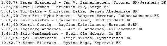 Øystein og Jorun toppet lista med Knut og Stein et ørlite poeng bak og med Eldbjørg og Berit på tredje. Gratulerer!