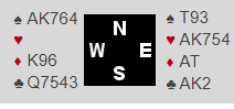 Det er en safevariant her. For om du legger ned kongen i andre trumfrunde og den andre honnøren faller får du tretten stikk, men om knekten er singel har jo syd Q8xx, og da får du to trumftapere om du spiller A-K siden den andre honnøren tar med seg nieren, og du blir å ha igjen 7xx mot 10 singel, og motstanderen har Q-8. Du må altså spille liten i andre trumfrunde. Hvis det kommer kløver ut er det litt skummelt da de kanskje tar en kløverstjeling, og så sitter trumfen 3-2. I verste fall går du da bet med kløveren 4-1 og trumfen QJ dobbel, altså bet i stedet for tretten enkle stikk! Men safevarianten blir riktig spilt når det sitter som det satt i Manila: