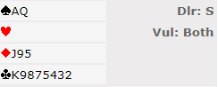 Jeg tipper mange svarer kløver på det spørsmålet. Og det kan godt være riktig, makker kan for eksempel være renons! Men det kan spillefører også være, og i så fall er det ganske klart at makker må ha noe bra i ruter, for han har jo ikke mer en eventuelt kongen i spar. Og om det er spillefører som er renons i kløver så kan det hende hans ruter forsvinner. Slik tenkte jeg, kanskje overtenking synes du, og det ble en grusom skivebom da jeg la ruter 5 på bordet: