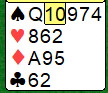 Som du ser er spar 10 makert, og det er et normalt utspill med dette. Men det var ikke godt nok i dette spillet selv om makkeren hadde to honnører!