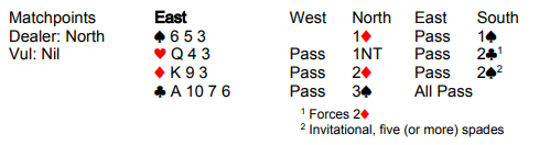 Spillefører har vist KQJ - femte i spar fra start. Han hadde trolig kun tre hjerter (J-10-9) fra start, noe som bekreftes av makkers fordelingskast samt at syd ikke meldte 2 hjerter i stedet for 2 spar da han inviterte til utgang. Syd kan nok ikke ha K-Q-x i kløver, da ville han helt sikkert på et tidspunkt ha spilt den andre runden kløver fra nord.