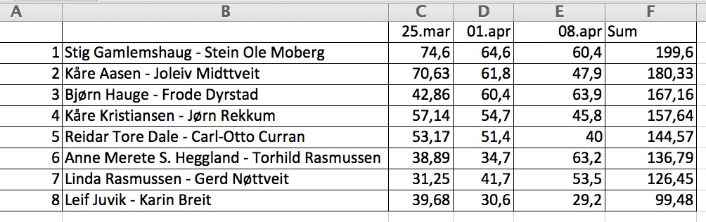 Klubbmeisterskapet samanlagt blei overlegent vunne av Stig og Stein Ole.
