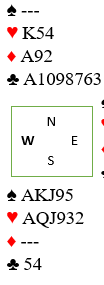 Og vest var renons i spar, men han så også hva som ville skje om han satte i en trumf så han kastet en ruter.