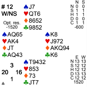 Og det hadde 7 NT. Vel, kontrakten var nedlegg (3+1+5+3 = 13 stikk=)!