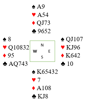 Meldingene gikk på forskjellig måte. Noen steder åpnet nord med 1 minor (oftest 1 kløver). Syd meldte spar og viste senere lang spar. Makker var med og meldte, du vet etterhvert at han trolig har hjerter og kløver. Det blir kamp om kontrakten, spar N/S og hjerter Ø/V. Du og makker konkurrerer til tre-trinnet (i alle fall). Hva om motparten da er med til 3 spar, dobler du?