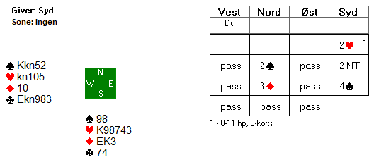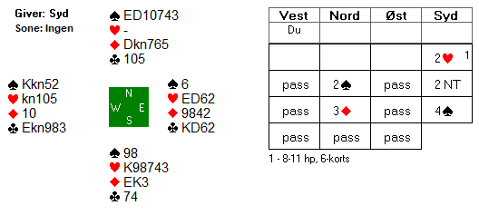 Her et et typisk parturningsspill hvor mange "haiet" litt for parturneringspoengene (Nord giver, ingen i sonen):