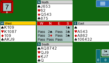 Hvis spillefører finner trumfdama for så å løse kløveren med en taper, kan 3 spar vinnes. For å unngå to kløvertapere må spillefører spille kløver tl åtteren (eller seile en av håndas to største kløvere).