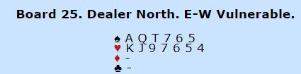 Det var ikke særlig vanskelig å vinne alle stikkene. I Bermuda Bowl meldte seks av åtte N/S-par 7 hjerter.