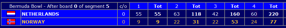 Og Norge har fortsatt ikke tapt Bermuda Bowl-semifinalen mot Nederland.