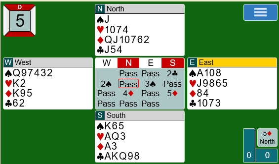 I spill 5 var Ulf og Nils aktive etter at Nickell i syd åpnet med Halles 2 kløver: