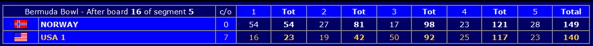 Etter de seks første spillene ledet Norge settet 9-0. Flesteparten av disse IMPene kom på spill 2:
