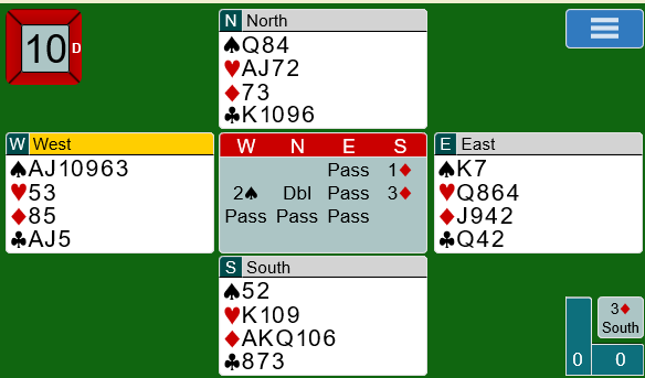 Spill 9 var buttspill, men så ble det sving igjen på spill 10. Hvordan ville du planlagt spilleføringa i 3 hjerter etter spar ess i utspill fulgt av ny spar?