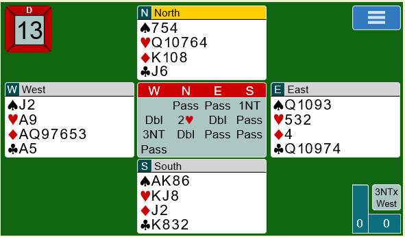 Ved det andre bordet gjenmeldte Rodwell 3 ruter i stedet for 3 hjerter:
