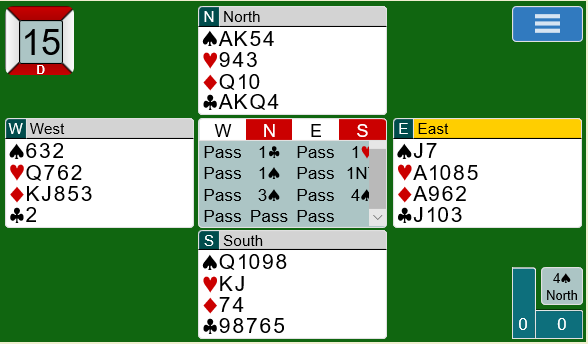 Forutsatt at sparen løser seg uten taper må man gjøre rett i hjerter dersom motparten starter med å innkassere to ruterstikk. Allan fikk kløver knekt ut, og da slapp han å gjette hjerteren. Etter å ha tatt ut trumfen kunne han ta for alle kløverstikkene og kaste en ruter fra hånda på bordets siste kløver. Nå handlet hjertervalget bare om overstikket. Allan gjettet ikke riktig, men kunne uansett notere 620 i den norske kolonna.
